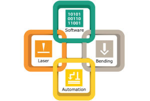 In order to take full advantage of fiber laser cutting technology, order input on the ERP side needs to be efficient so that the production planning and material planning systems can effectively output the orders and prepare the materials for processing. Once the order is received at the order management system, the system can automatically separate the parts by their material type, thickness and due dates. As the parts accumulate from all orders a much higher effective material utilization can be realized when many different parts are used to calculate the best possible material yield. These systems can also process orders as they are received and produce the nests immediately.